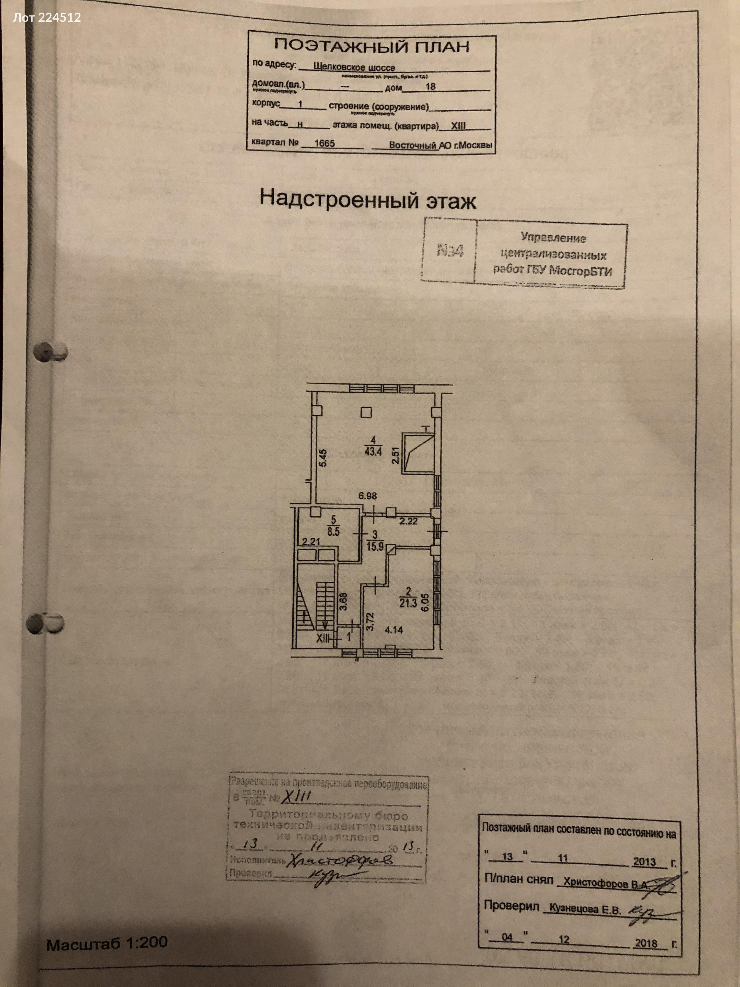 Лот № 224512 Предлагаю вашему вниманию уникальные апартаменты, расположенные по адресу: Москва, Щёлковское шоссе, 18к1. Обьект расположен на 19 этаже кирпично-монолитного дома, построенного в 2007 году, располагает высокими потолками (4,5 м) и огромной лоджией, что создаёт ощущение дополнительного пространства. При желании есть возможность перепланировки и увеличения жилой площади за счёт антресоли. Расположение апартаментов удобно как для жизни, так и для работы. В окрестностях вы найдёте множество популярных мест, включая магазины, кафе и парки. Метро "Щелковская" находится всего в 2 минутах на автомобиле, что делает путешествия по городу комфортными и быстрыми. Внутри квартиры выполнен косметический ремонт, а окна выходят как во двор, так и на улицу. Доступна наземная парковка и современные лифты. Эти апартаменты идеально подойдут как для проживания, так и для коммерческого использования.